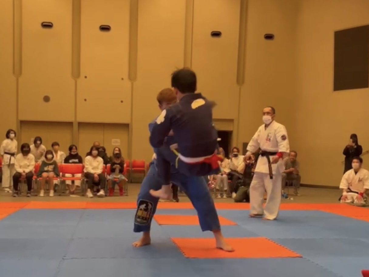 和術選手権 令和5年3月19日和術選手権が行われました 御館山道場から2名の選手が出場し大村市在住の松尾選手白帯びながらフルコンタクトの部ワンマッチ形式で参加し判定で敗れ、一般柔術の部では、決勝で惜しくも敗れました。 諫早の小野中学校2年久家選手は顔面寸止め直接打撃、柔術(どちらもワンマッチ形式)に参加し2試合とも勝利者となりました。 二名とも良く頑張ったと思いますが、まだまだ課題が見えた試合でした。 PrevNext0123456